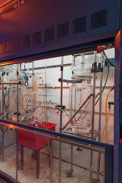 We have a team of 10 process chemists and engineers, supported by an infrastructure of fume-hoods, kilo labs, state-of-the-art analytical instrumentation, along with non-GMP production areas.
